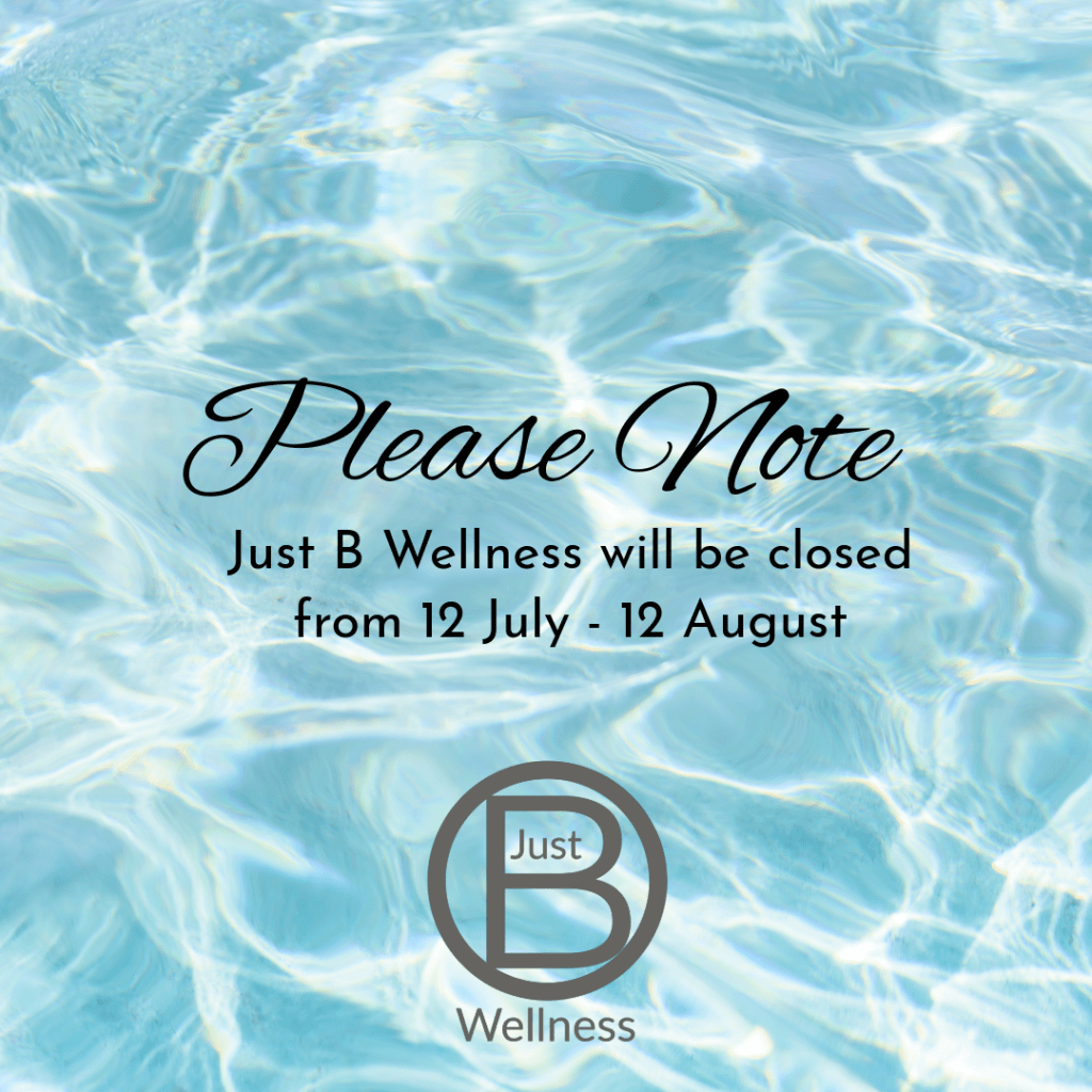 Just B Wellness is closed for a summer break. I will be back, refreshed and rejuvenated in August. I can’t wait to treat you then. Have a beautiful summer ❤️